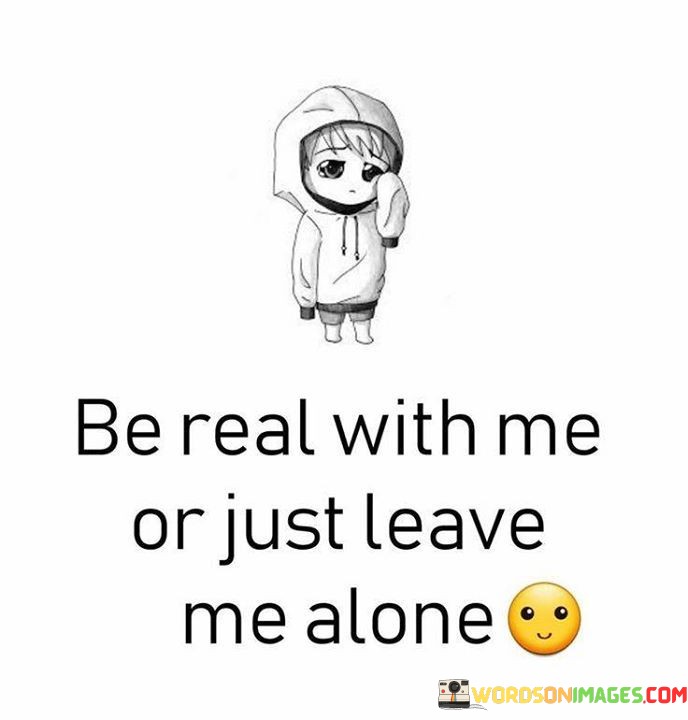 This quote is about honesty in relationships. It's saying that people should be truthful or choose to go away. In a friendship or any connection, it's better to have honesty than fake words. It's like asking for clear water instead of cloudy water - you want what's real. This quote reminds us that being genuine is important in any kind of relationship.
