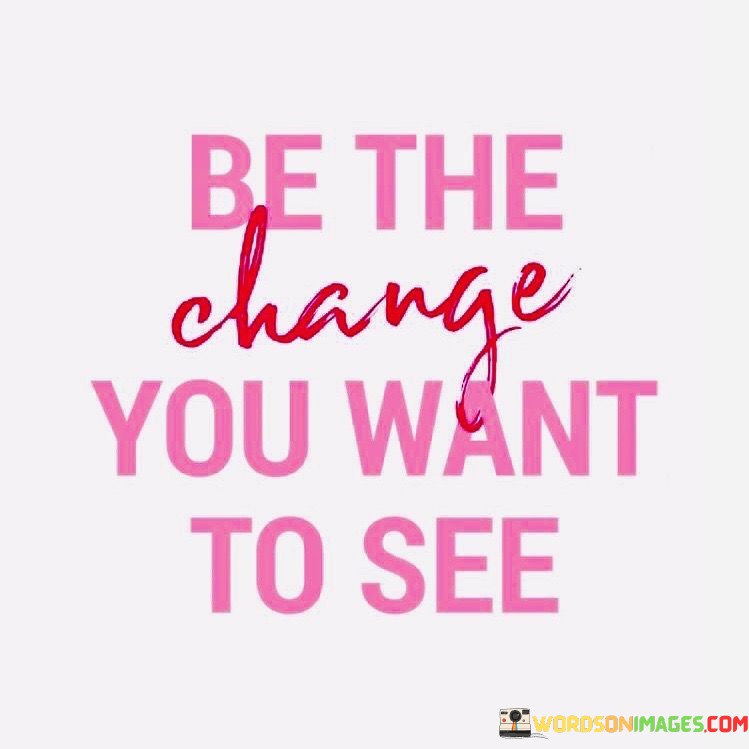 If you desire change, take the initiative to embody it. This quote suggests that instead of merely wishing for transformation, one should actively exemplify the behaviors and qualities they hope to witness in the world. It's a call to lead by example and be a catalyst for positive shifts.