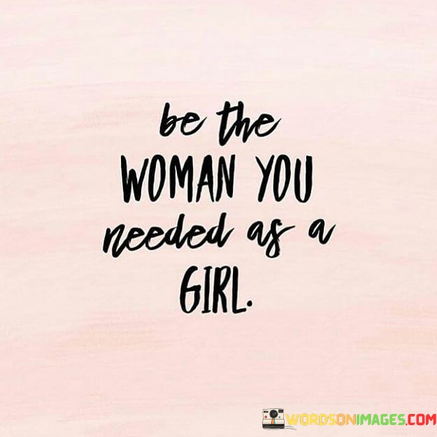 Develop into the mentor you yearned for as a girl. Transform into the strong woman you aspired to be. This saying underscores the concept of personal growth and evolution, suggesting that by embodying the qualities you admired in others, you can become a source of inspiration for your younger self.