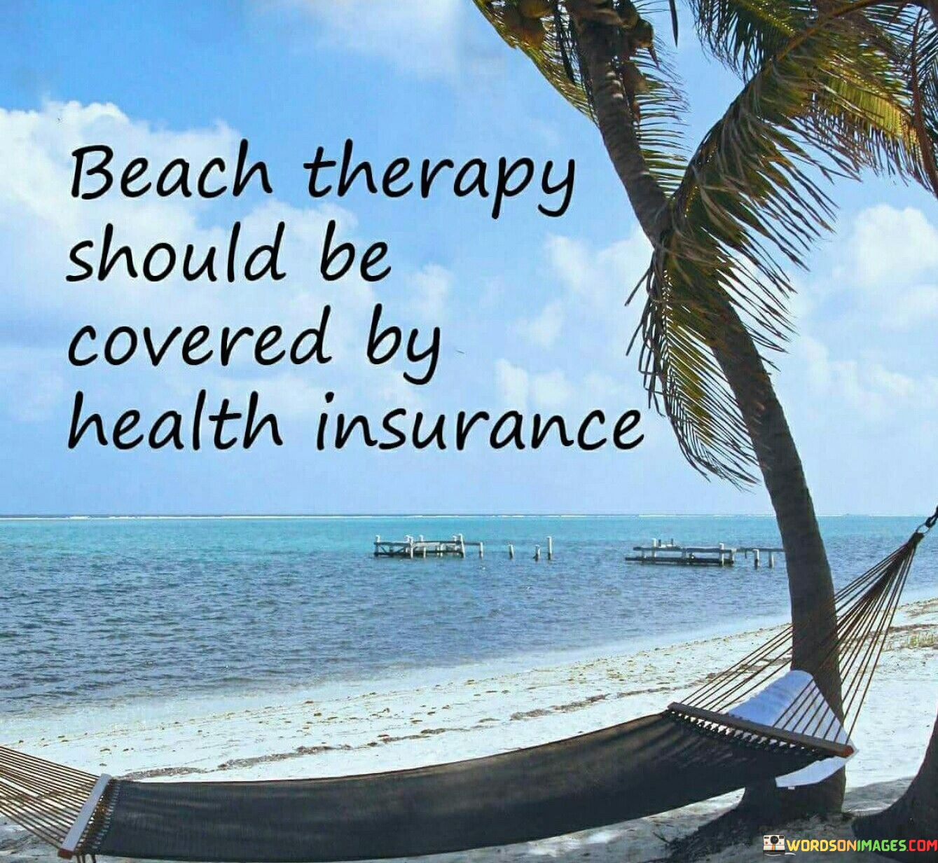 While whimsical, the quote highlights nature's therapeutic role. Although not literal insurance, recognizing the beach's benefits promotes self-care for a healthier life.