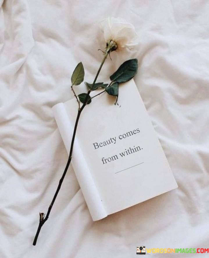 True beauty originates from one's inner qualities, radiating outward to touch others. This quote highlights that a person's kindness, compassion, and character contribute to their attractiveness. External appearances may catch the eye, but it's the goodness within that truly captivates and leaves a lasting impression.