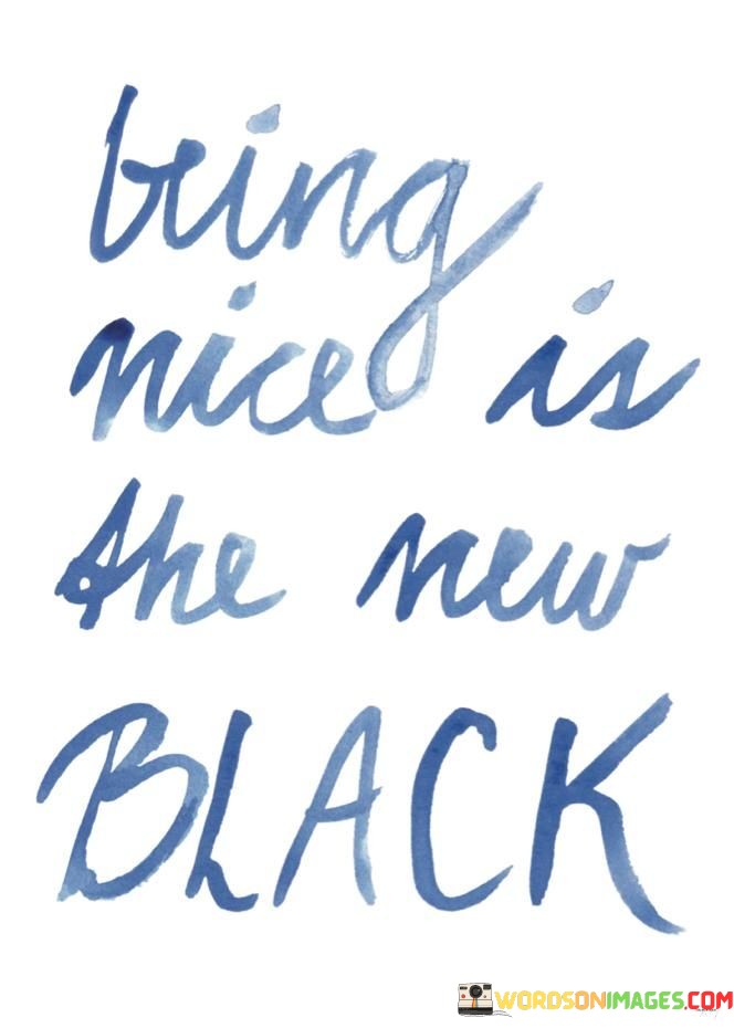 Kindness is always in style, and being nice is a timeless trend that never goes out of fashion. Just like the color black, it's versatile and suits everyone. When we choose to be kind, we make the world a better place one act of goodness at a time.
