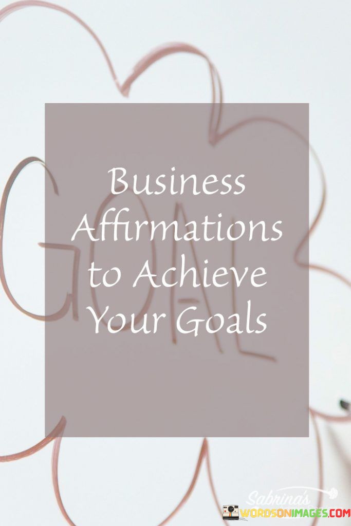 The quote "Business Affirmations To Achieve Your Goals" emphasizes the importance of using positive and focused statements or affirmations in the world of business to reach your objectives. Affirmations are like powerful mantras that help you stay motivated and on track to accomplish your goals.