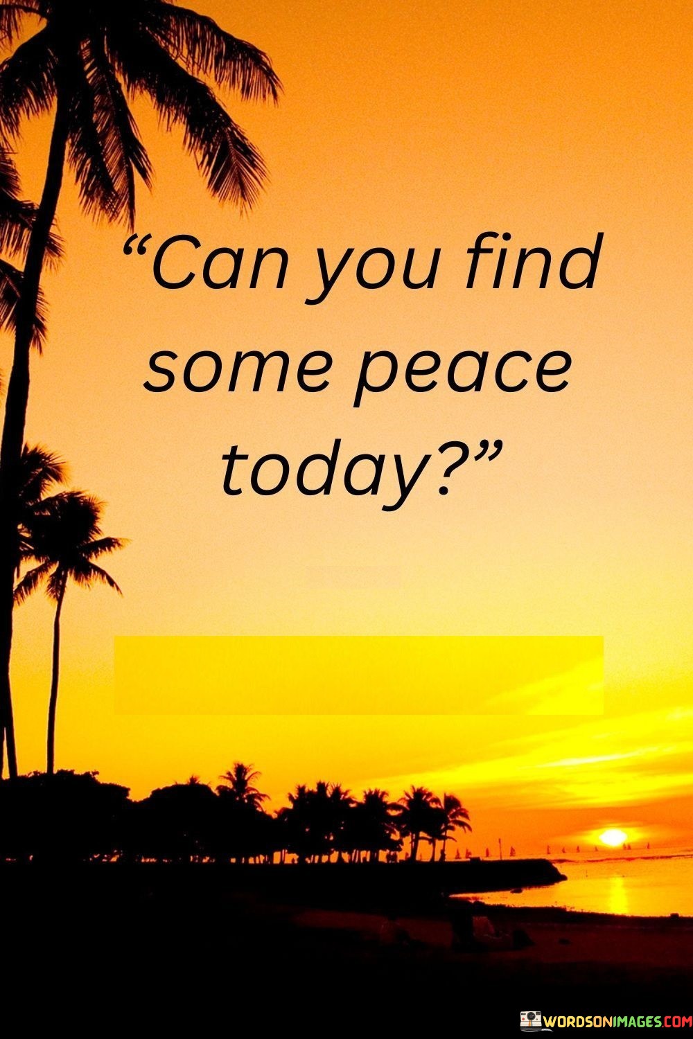 Take a moment to ask yourself: Can you find some peace today? This quote invites you to pause amidst the hustle and bustle of life and seek inner tranquility. It's a reminder that, even in the midst of chaos and challenges, you have the power to discover moments of peace.