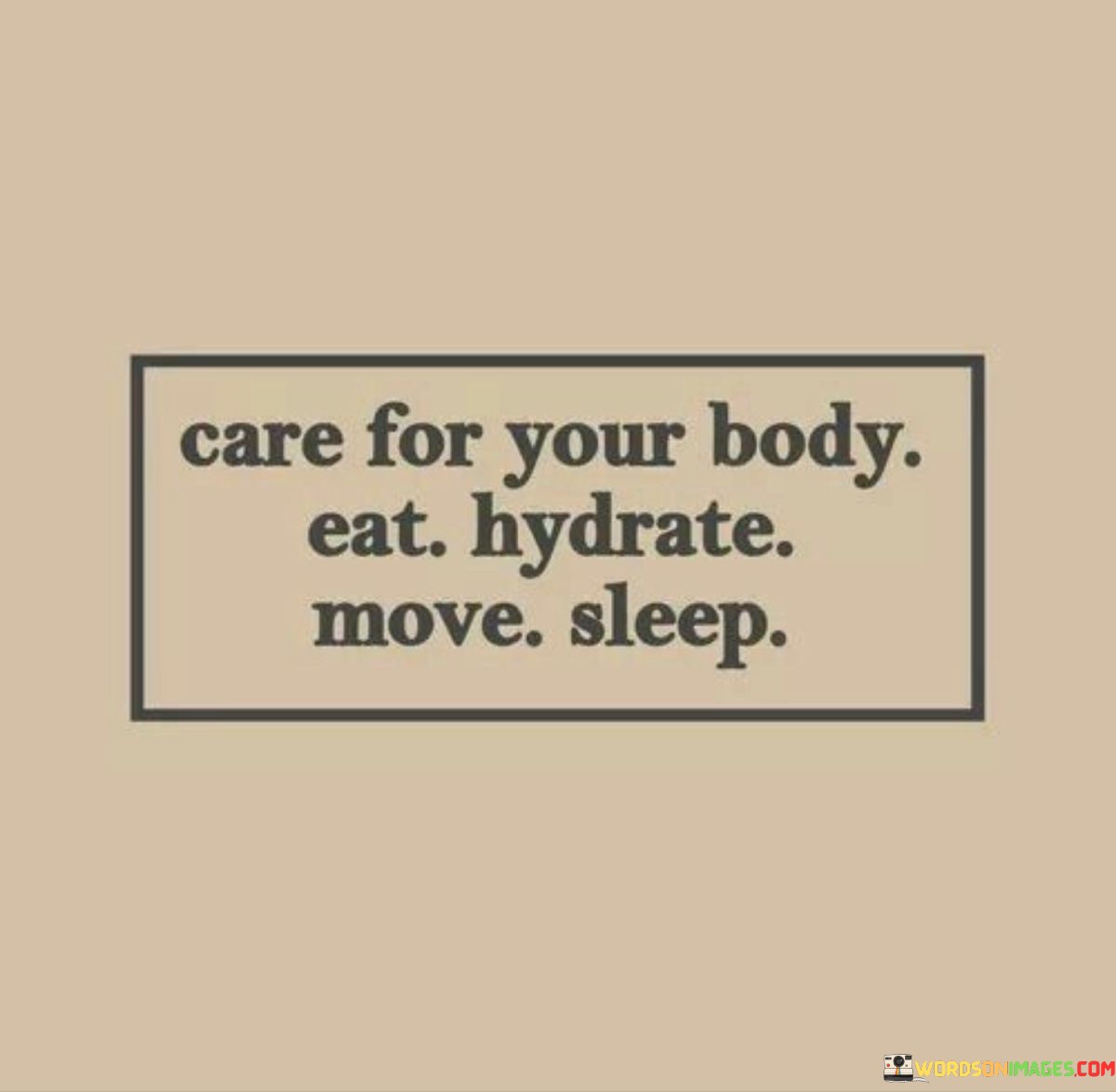 This quote emphasizes the importance of taking care of your physical well-being in a straightforward manner. It breaks down four essential aspects of self-care: eating, hydrating, moving, and sleeping.