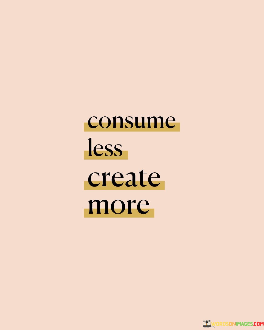 At the same time, this quote encourages us to ramp up our creativity. It's about making, building, and forming things ourselves. By doing so, we engage our minds, develop new skills, and produce unique items. This could range from crafting to cooking to writing and beyond. Creating more can lead to personal satisfaction, growth, and even the possibility of sharing what we make with others.