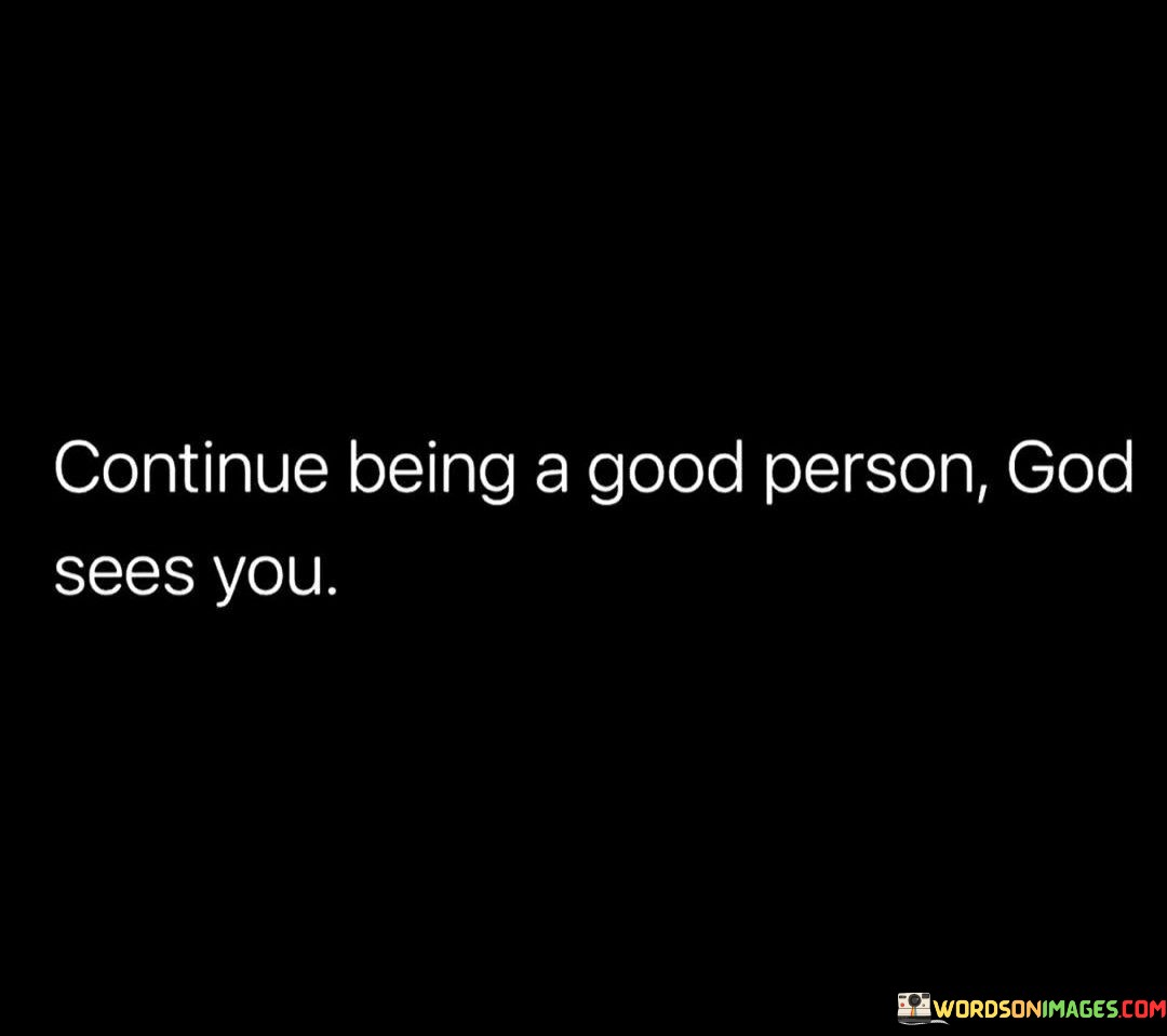 This quote serves as a reminder of the importance of maintaining one's integrity and goodness, with the assurance that God is always aware of our actions.