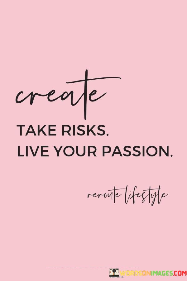 The words "Create, take risks, live your passion" succinctly encapsulate an empowering message about pursuing a fulfilling and purpose-driven life. In this context, the first paragraph emphasizes the proactive nature of carving one's path.