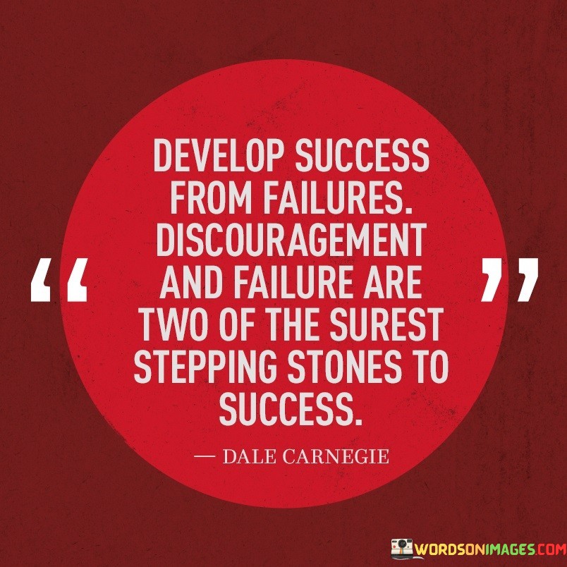 The quote serves as a motivational reminder. By highlighting the potential positive outcomes that can arise from failures and discouragement, individuals are encouraged to view setbacks as part of the learning process and to approach challenges with resilience and determination, understanding that these experiences can ultimately contribute to their journey toward success.