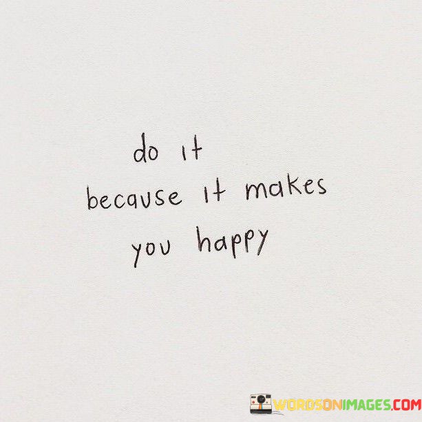 The phrase underscores the significance of personal happiness as a driving force. It's like a reminder to focus on activities that resonate with your inner desires. By choosing actions that bring happiness, you're prioritizing your emotional well-being and embracing a fulfilling approach to life.