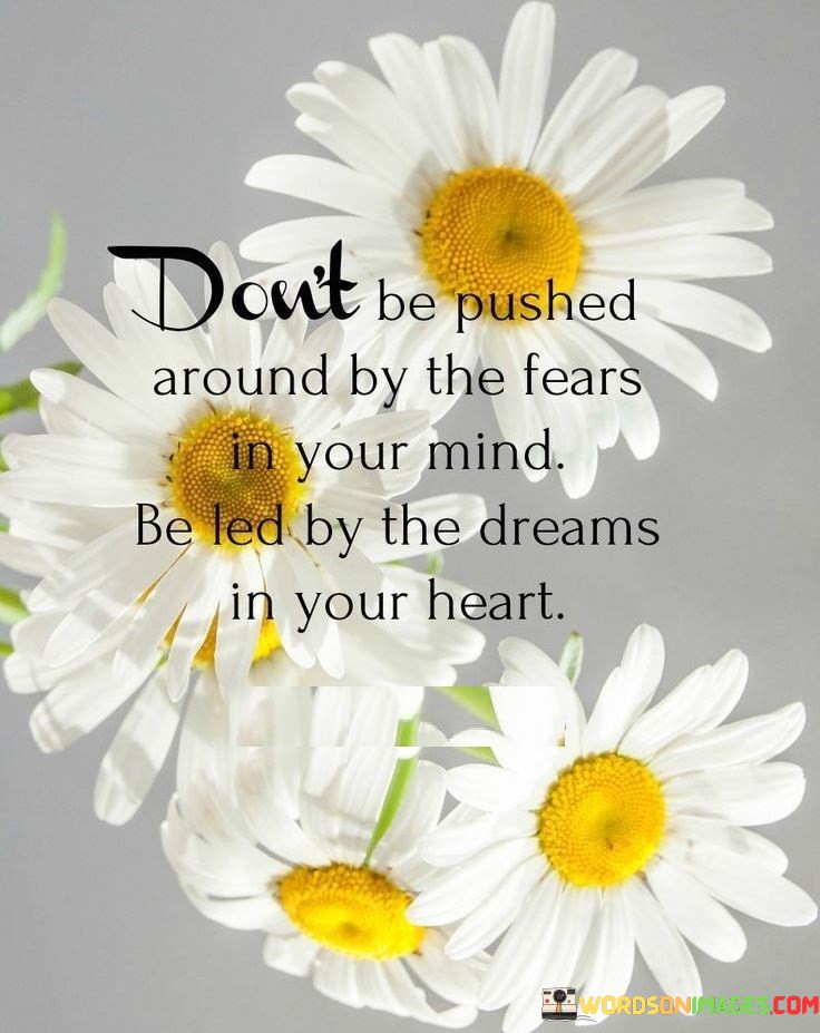 In the first paragraph, this phrase urges individuals not to be controlled by their inner fears. It suggests that succumbing to anxieties can lead to paralysis or avoidance. By advocating for mental resilience, the phrase emphasizes the importance of not letting fear dictate one's actions.