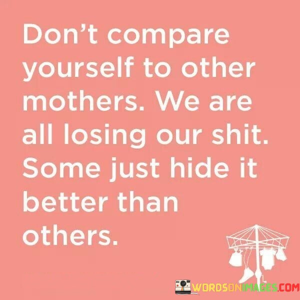 "Some just hide it better than others" acknowledges that some mothers may appear composed and untroubled, but in reality, they too face their own struggles. This part of the quote encourages empathy and support among mothers, fostering a sense of solidarity in navigating the complexities of parenthood.