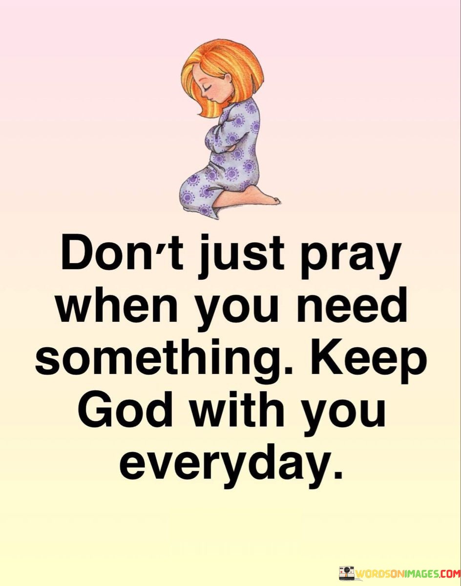 This quote underscores the idea that a relationship with God should not be limited to moments of need but should be a continuous and constant presence in one's life.