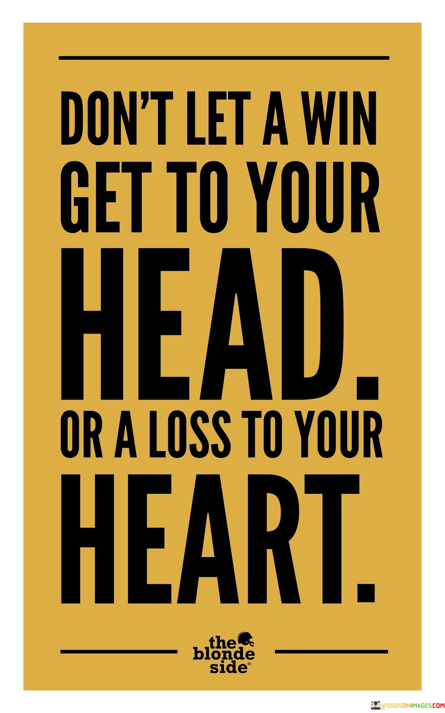 Ultimately, the quote champions emotional intelligence. It implies that staying grounded and composed amid achievements and disappointments is essential. By highlighting the significance of balanced reactions to wins and losses, the quote guides individuals towards maintaining a stable and healthy emotional state.