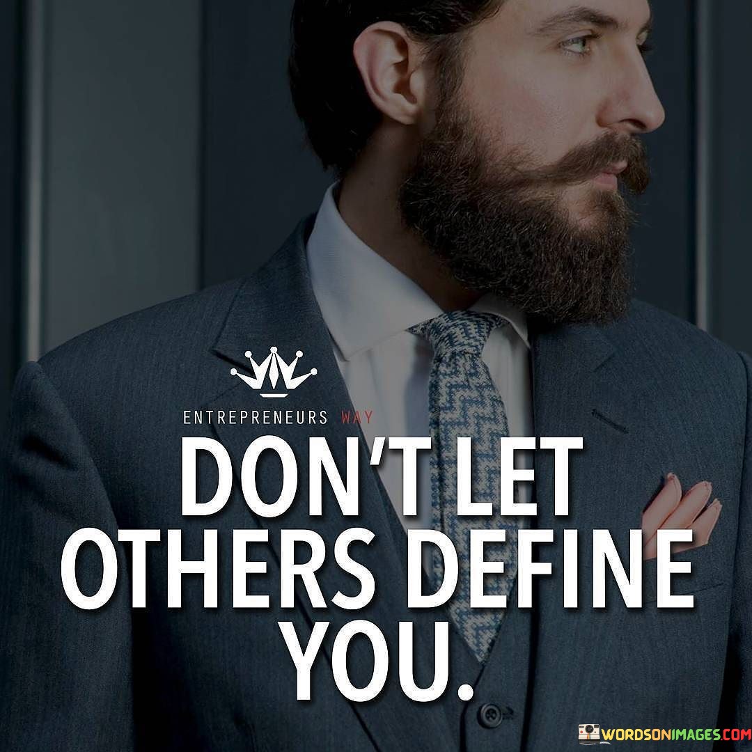 This quote advises against allowing others to shape your identity. You are not defined by their opinions. Instead, you define who you are. It's like being the author of your own story, not letting others write it.