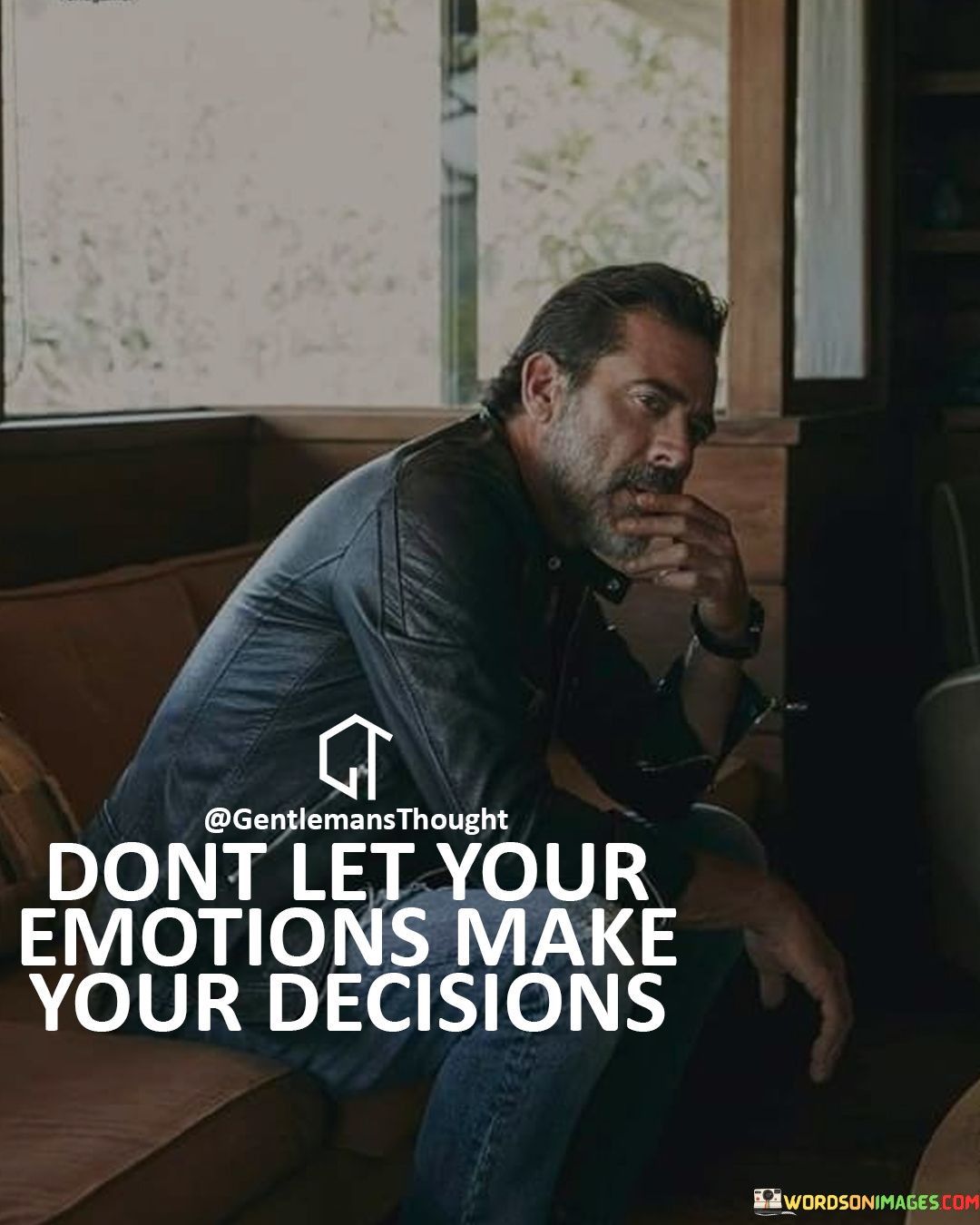 By not letting emotions rule, you gain control. The quote underscores the importance of maintaining a balanced perspective. It encourages thoughtful consideration, preventing impulsive choices driven solely by feelings. When emotions don't solely guide decisions, you enhance your ability to make choices aligned with your long-term goals.