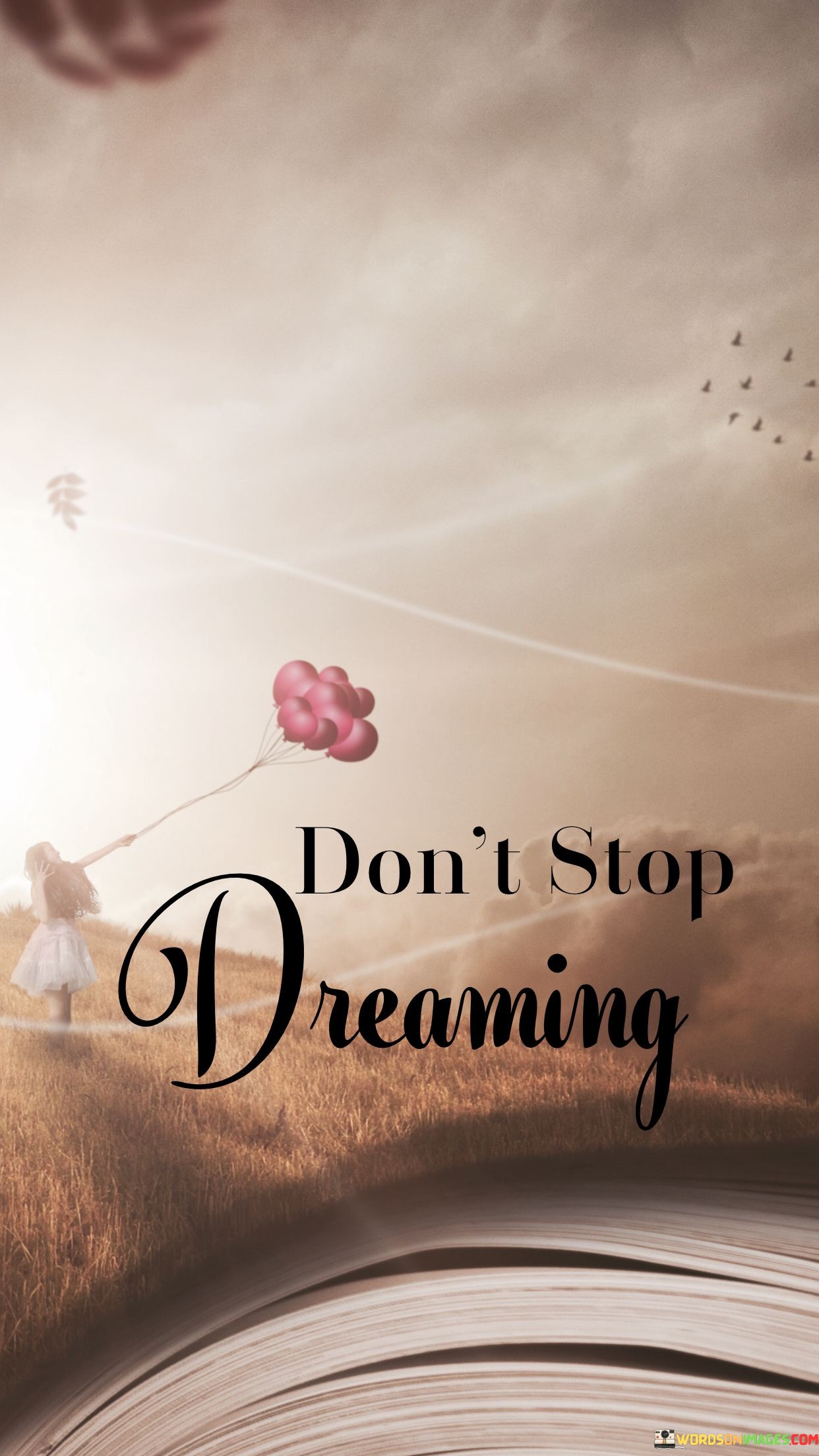 This quote, "Don't Stop Dreaming," carries a powerful message about the importance of holding onto our dreams and aspirations. It encourages us to keep our hopes alive and continue reaching for our goals, no matter the challenges or setbacks we encounter.