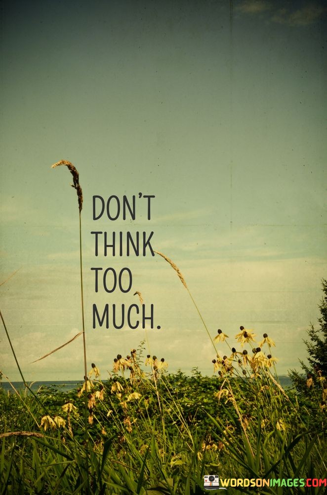 When we think too much, we often create unnecessary stress and anxiety for ourselves. We may worry about what could go wrong or try to find solutions to problems that don't exist. By not thinking too much, we can free ourselves from the burden of excessive thinking and allow ourselves to enjoy the present moment.
