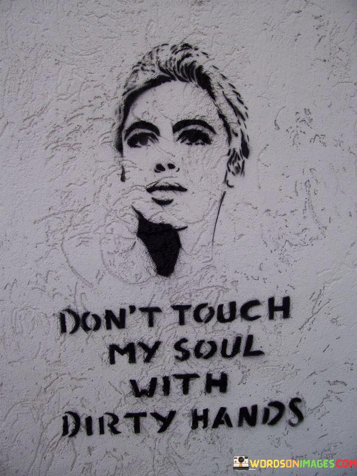 The quote "Don't Touch My Soul With Dirty Hands" carries a profound message about protecting one's inner self and emotional well-being. In this expression, "soul" represents the core of a person's emotions, beliefs, and values, while "dirty hands" symbolize negative influences, intentions, or actions from others.