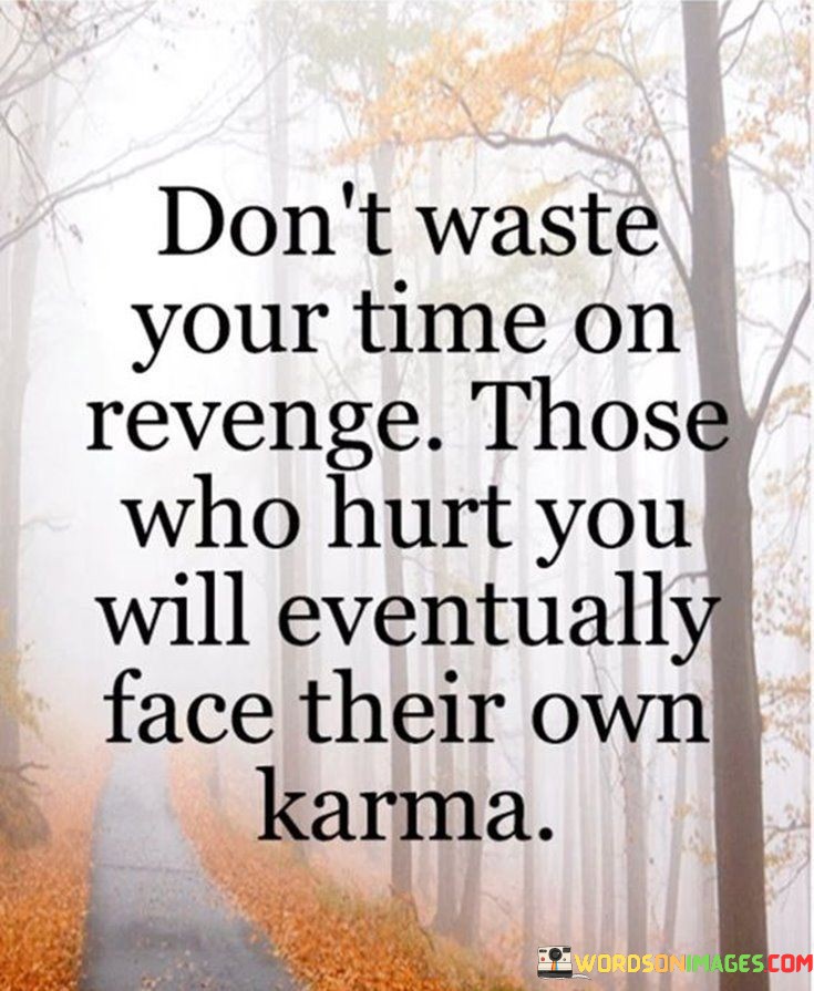 In, the quote serves as a reminder to focus on personal growth and positive actions. It encourages individuals to let go of the desire for retaliation, trusting that justice will be served through natural consequences. By embracing this perspective, one can cultivate inner peace and allow life's inherent fairness to take its course.