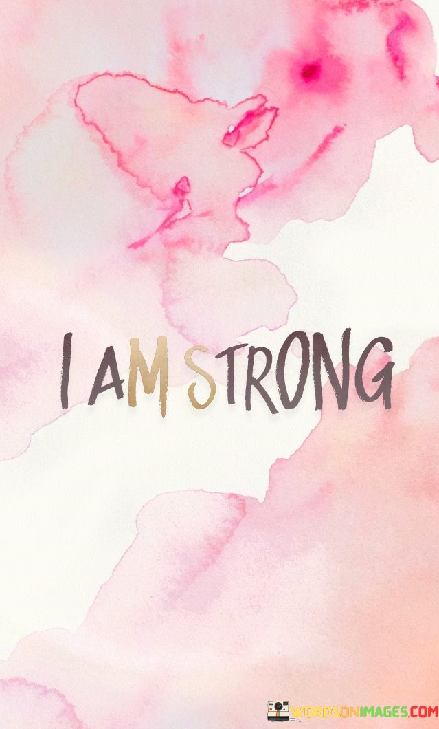 This quote, "I-Am-Strong," is quite short, but it carries a powerful message. It's all about self-belief and confidence. When someone says, "I am strong," they are expressing their inner strength and resilience. It's like telling yourself that you have the power to overcome challenges and difficulties.