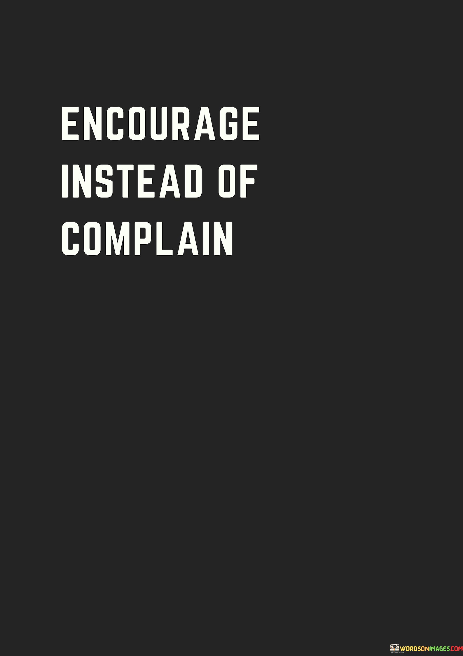 This quote encourages a shift in our attitude and behavior. Instead of dwelling on complaints and negativity, it advocates for a more constructive approach. In essence, it's urging us to focus on solutions rather than problems. Complaining often leads to a cycle of dissatisfaction and unproductive energy, whereas encouragement fosters positivity and motivates both ourselves and others.