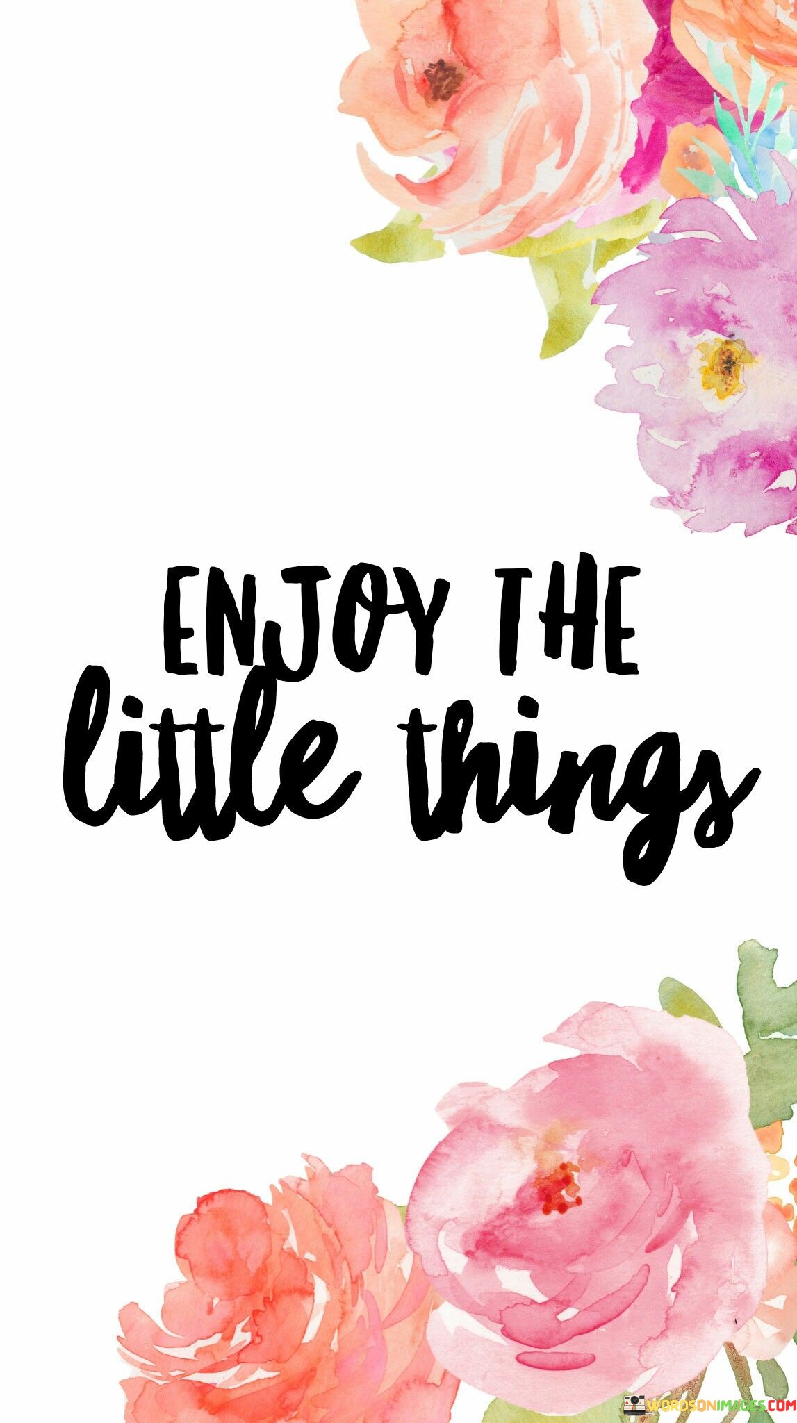 The quote's essence is embracing mindfulness. It encourages being present. By relishing the little things, you cultivate gratitude. Whether it's a sunset, laughter, or a cozy hug, these moments weave together, creating a mosaic of contentment and enhancing your overall well-being.