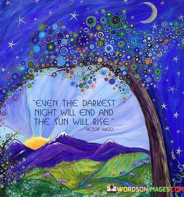 The statement underscores the concept of impermanence. It implies that tough times are temporary and that a new dawn is inevitable. This sentiment encourages individuals to hold onto hope during difficult moments.