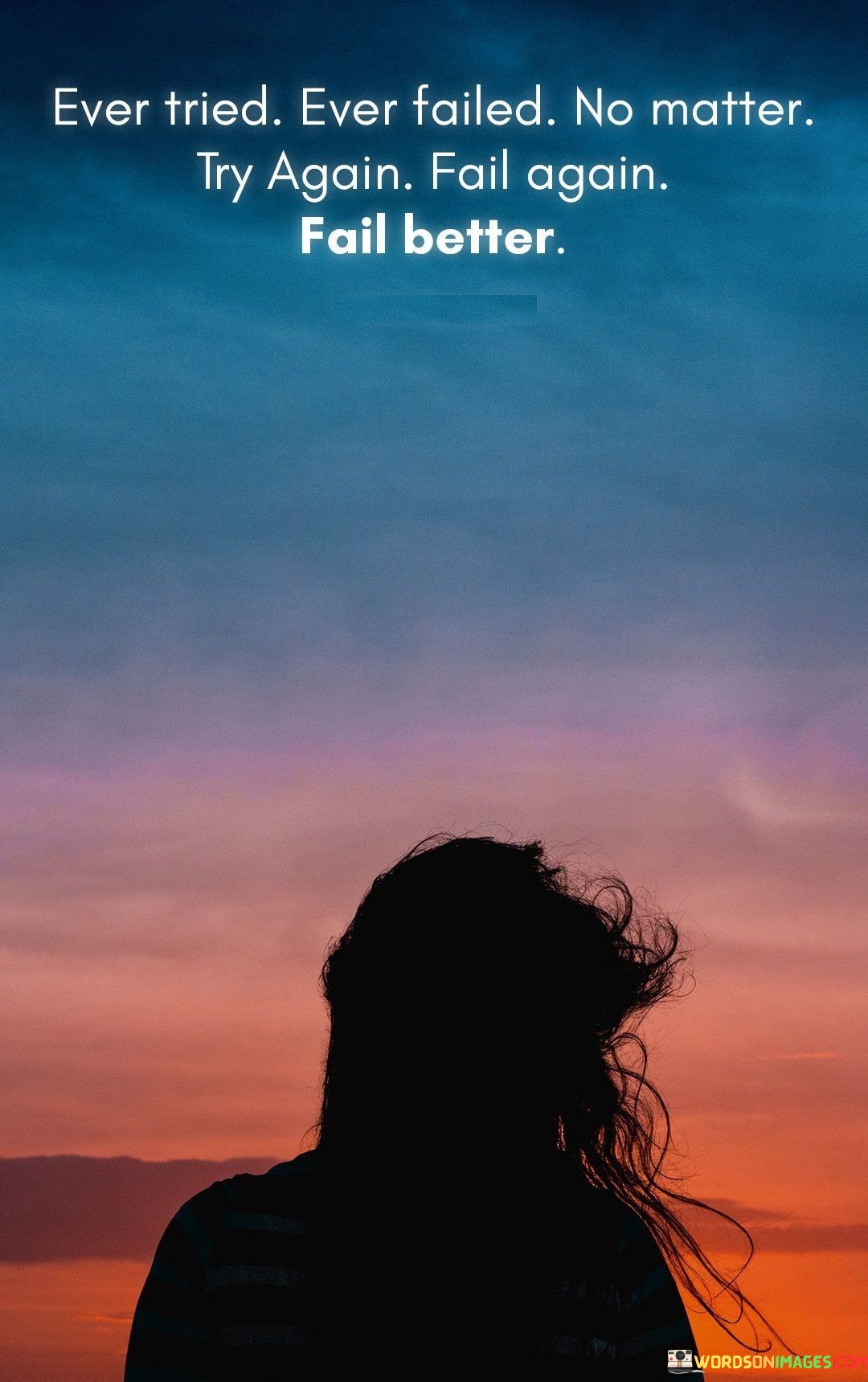 By presenting this progression of actions, the statements motivate individuals to not be discouraged by failures but rather to view them as opportunities for growth and refinement. They promote the idea that each failure can lead to a better understanding of the process and eventual success.