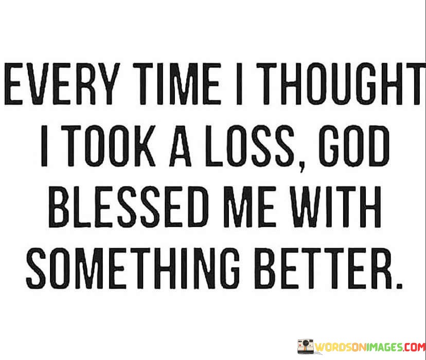 This quote conveys a message of resilience, faith, and trust in a higher power, often referred to as "God." It suggests that even in moments when it seems like one has experienced a setback or loss, there is a divine plan at work, ultimately leading to something more valuable.