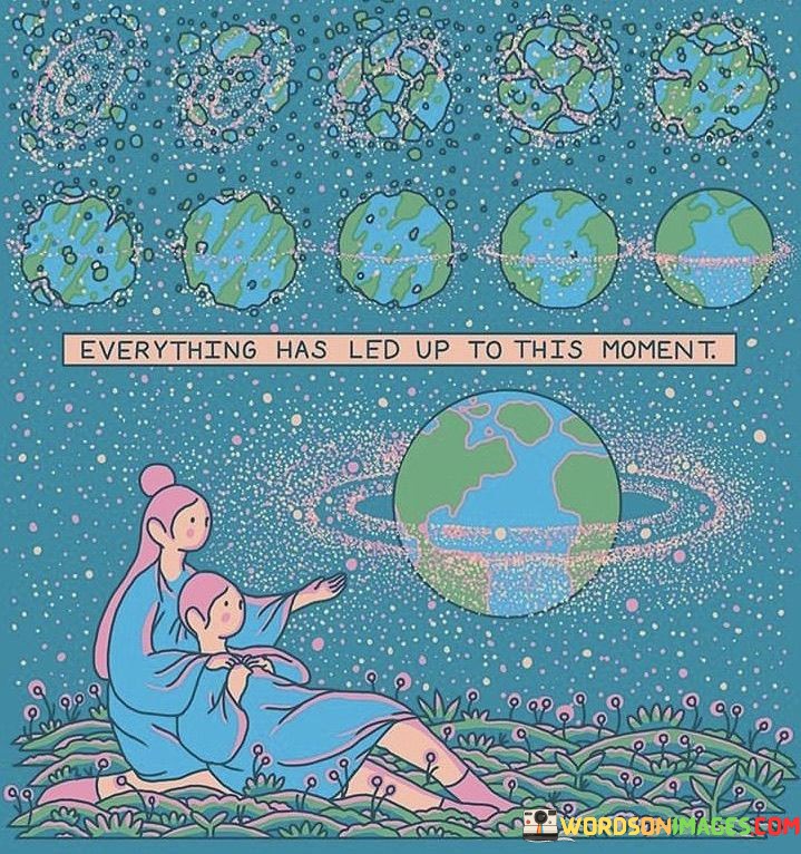 The quote reminds us to value the journey as much as the destination. Our experiences, no matter how challenging, have given us strength and resilience. The present moment is the culmination of all we've been through—a chance to appreciate our growth and to face whatever comes next with the wisdom we've gathered. So, let's embrace this moment, knowing that everything that has come before has led us here.