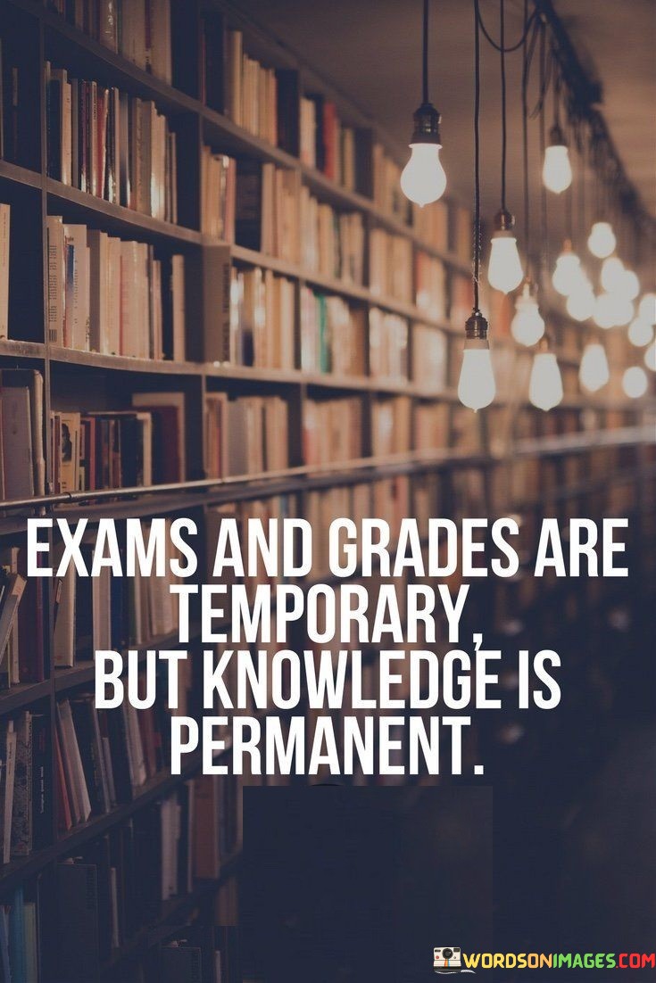 In the first paragraph, this statement highlights the transient nature of exams and grades. It suggests that these evaluations have limited significance over time. By emphasizing their temporary nature, the statement underscores the broader perspective on education and learning.