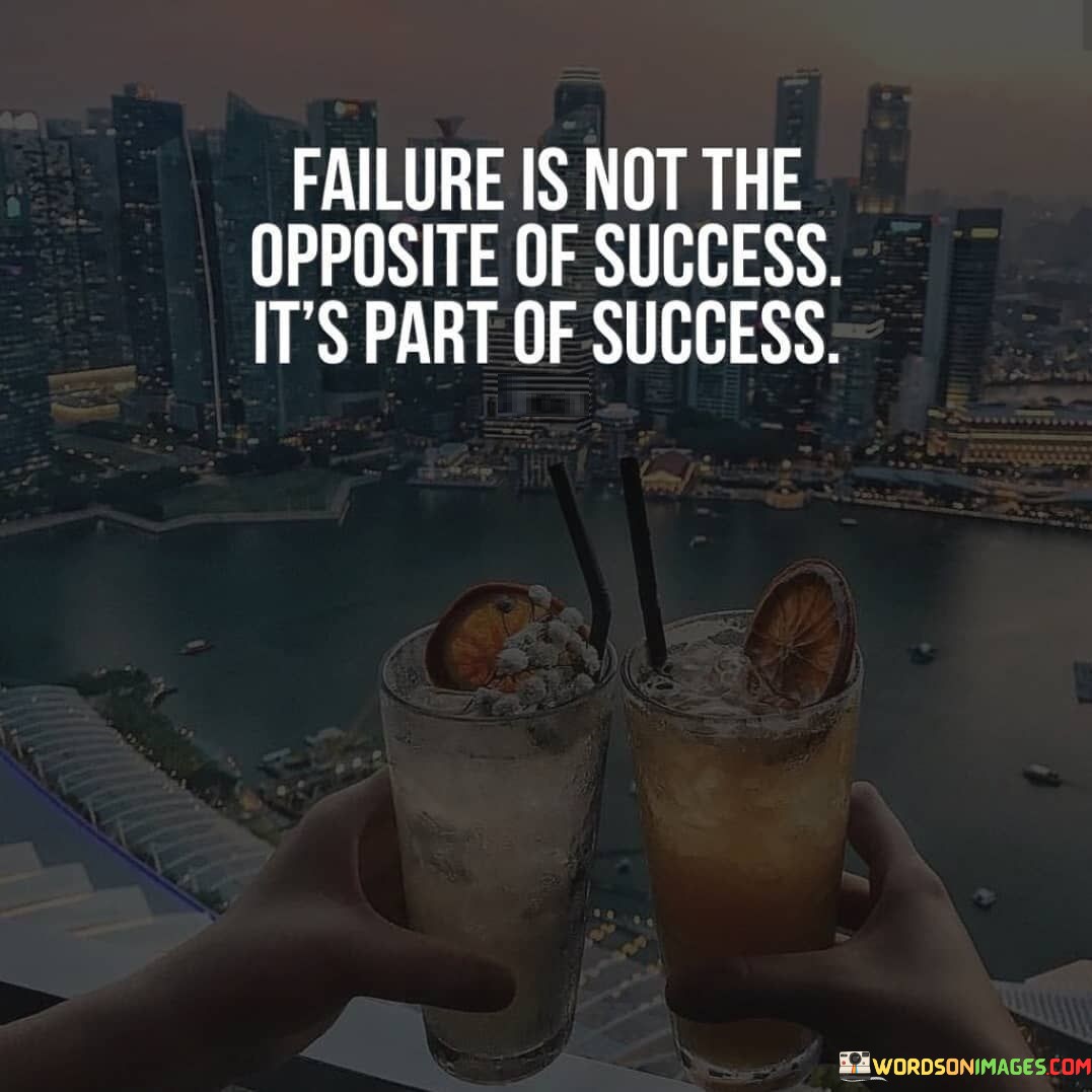 The statement "Failure is not the opposite of success; it's part of success" succinctly conveys the concept that failure is an integral and inseparable component of the journey toward success.