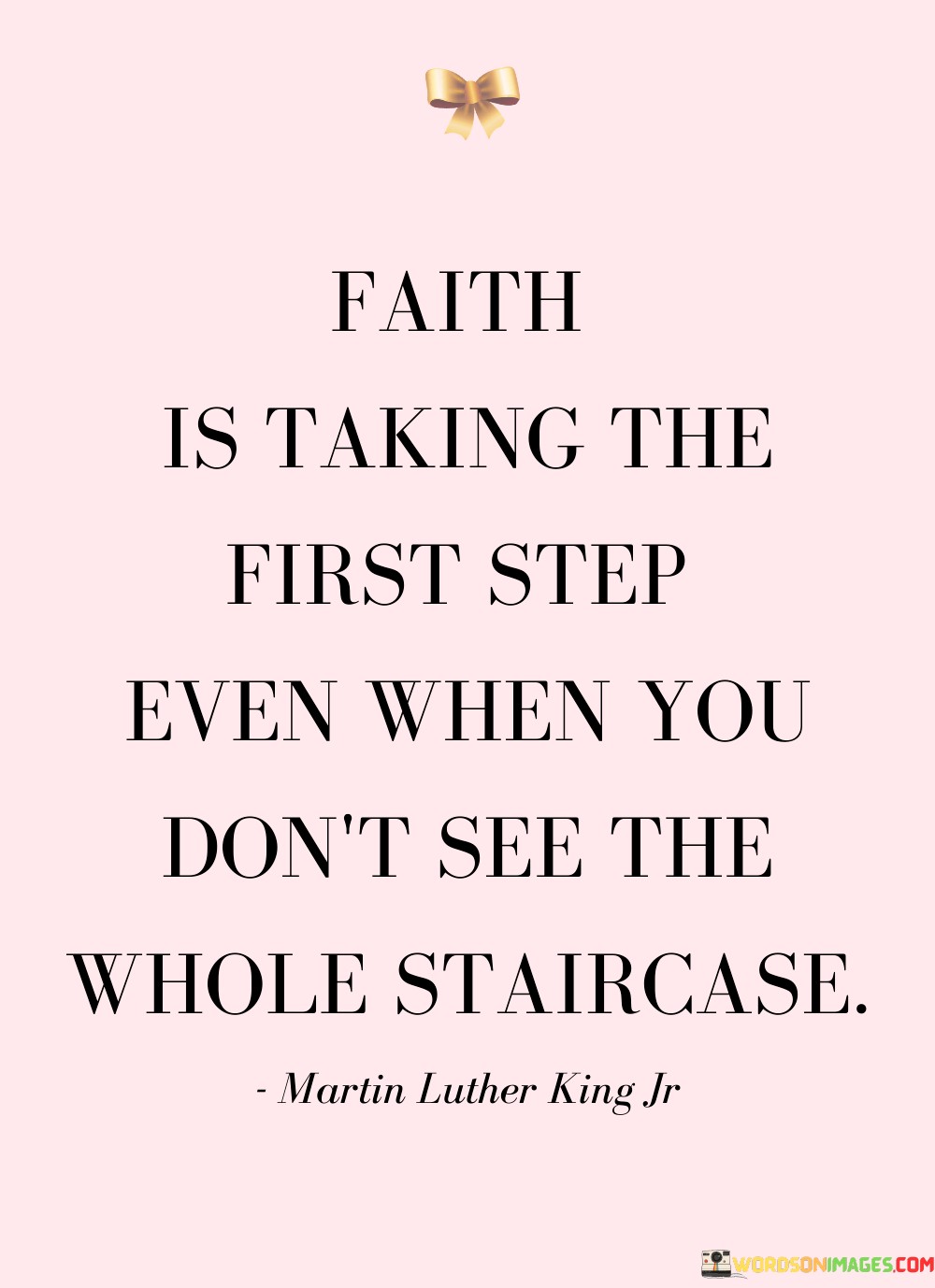 The imagery of not seeing the whole staircase underscores the idea that faith often involves venturing into the unknown, relying on belief and determination. It inspires individuals to take action, even when they lack a comprehensive understanding of what lies ahead.