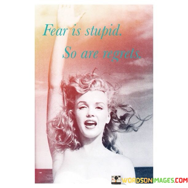 Fear often holds us back from pursuing our dreams or taking necessary risks. It's like a nagging voice in our heads that says, "You can't do it" or "It's too risky." This quote calls this fear "stupid" because it doesn't have a valid reason to stop us from trying new things or pursuing our goals.