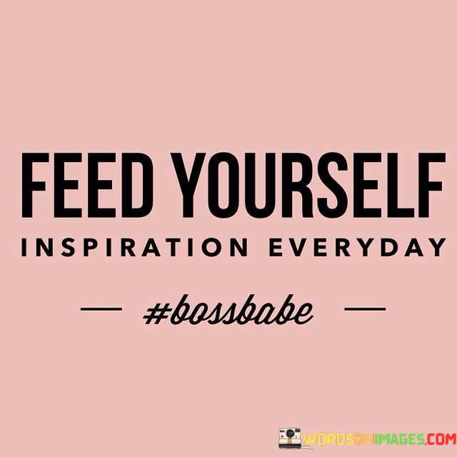 This quote encourages us to actively seek and nourish our minds with daily doses of inspiration. It emphasizes the importance of regularly exposing ourselves to uplifting and motivating sources to fuel our creativity and passion.