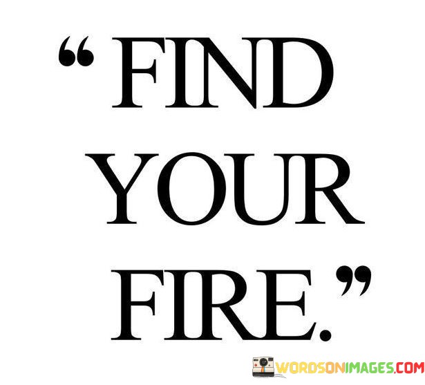 Embrace Your Purpose: "Find Your Fire" prompts us to seek our purpose in life. It's about understanding what truly matters to us and pursuing it relentlessly. This quote advises us to identify our unique talents and interests, and then channel them into meaningful pursuits. When we align with our purpose, we feel fulfilled and driven to make a difference.
