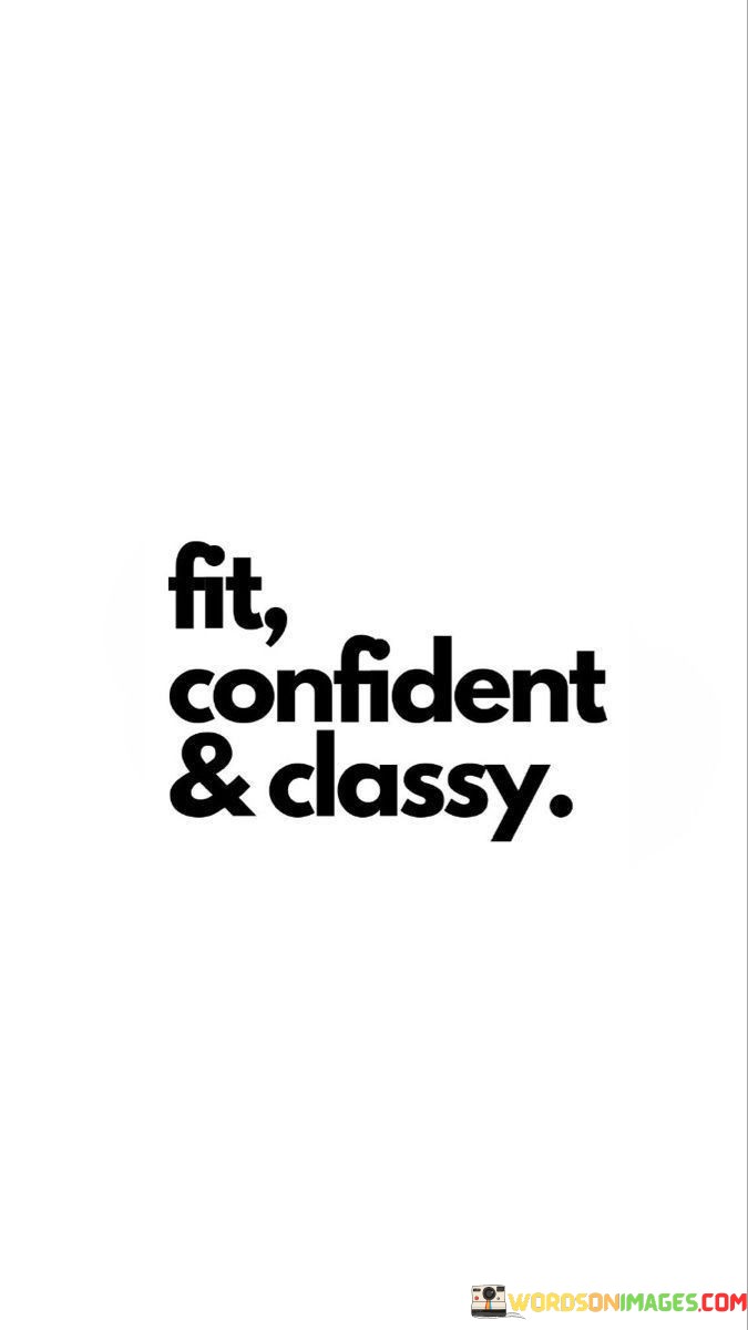 In essence, "fit, confident, and classy" encourages us to strive for a balanced and empowered life. It reminds us that true beauty and fulfillment come from taking care of our physical and mental health, embracing self-assuredness, and conducting ourselves with grace and respect in all aspects of life.