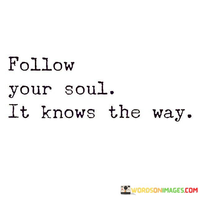 Your soul is like an inner compass guiding you through life's journey. "Follow your soul; it knows the way" is a profound reminder to trust your intuition and inner wisdom. It suggests that within each of us, there's an innate sense of direction that can lead us toward our true purpose and happiness.
