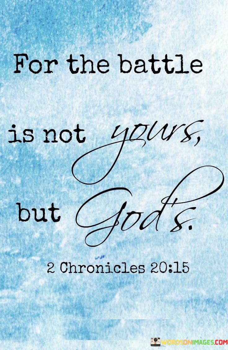 This quote conveys the idea that in the face of challenges and struggles, individuals should recognize that they don't have to bear the burden alone. It emphasizes the belief that God is the ultimate source of strength and can take charge of the battles in our lives.