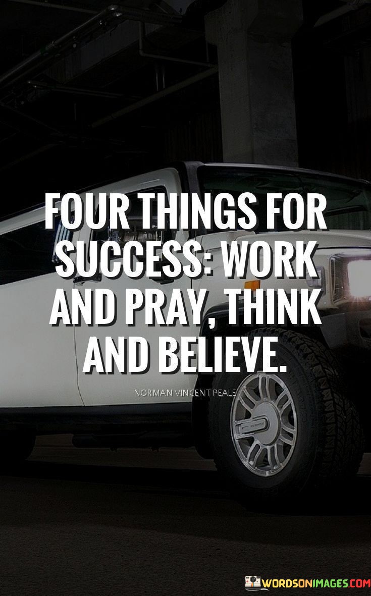 In essence, the quote emphasizes the synergy of active effort, positive mindset, and faith. It underscores that success is nurtured by a combination of hard work, mindfulness, and a strong belief in one's capabilities.