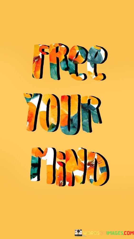 Think of your mind as a flowing river, sometimes dammed by stress and chaos. "Free your mind" is like removing those barriers, allowing the waters to flow freely, bringing serenity and a sense of liberation. It's a reminder that when your mind is free, you can experience life's beauty and possibilities without hindrance.