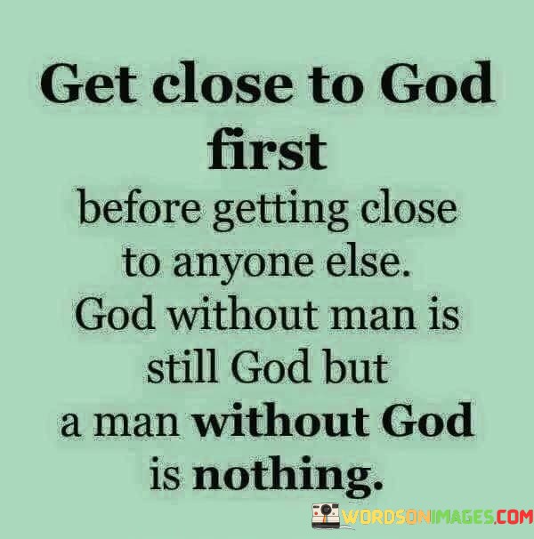 This quote emphasizes the importance of establishing a close relationship with God before seeking close connections with other people. It suggests that God's presence and guidance should be the foundation of one's life, providing a sense of purpose and strength.