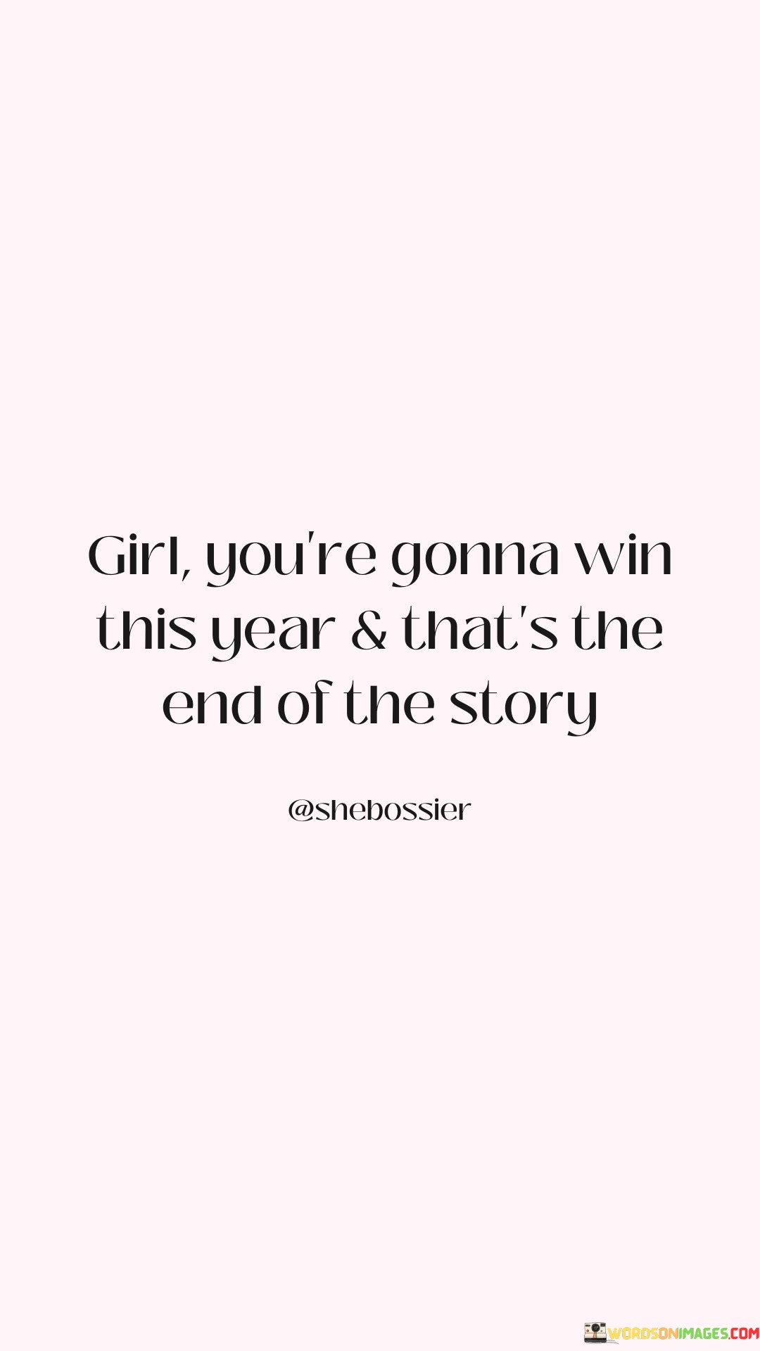 Listen up, girl – victory is in your grasp this year, and there's no more to say about it. This quote fuels your confidence and determination. It's like a cheering squad reminding you of your strength. Just like in a race, you're being assured that you'll cross the finish line triumphantly.