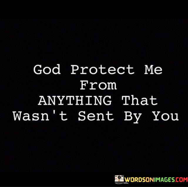 In essence, "God, protect me from anything that wasn't sent by you" represents a heartfelt plea for divine guidance and protection, demonstrating a strong belief in God's providence and the desire to live in accordance with His purpose and plan.