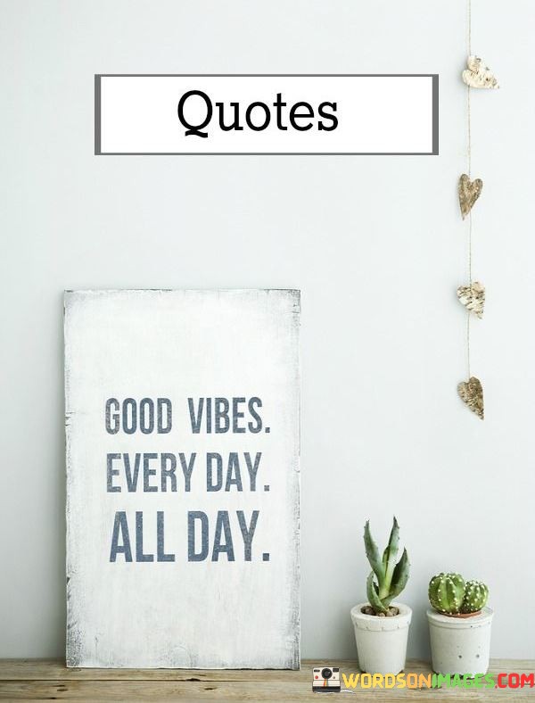 Good vibes are like a melody playing in your heart. It's like a soothing tune that never stops. Keep the rhythm of positivity going all day long. Like a songbird serenading the world, let good vibes be your song. So, remember: good vibes every day, all day.