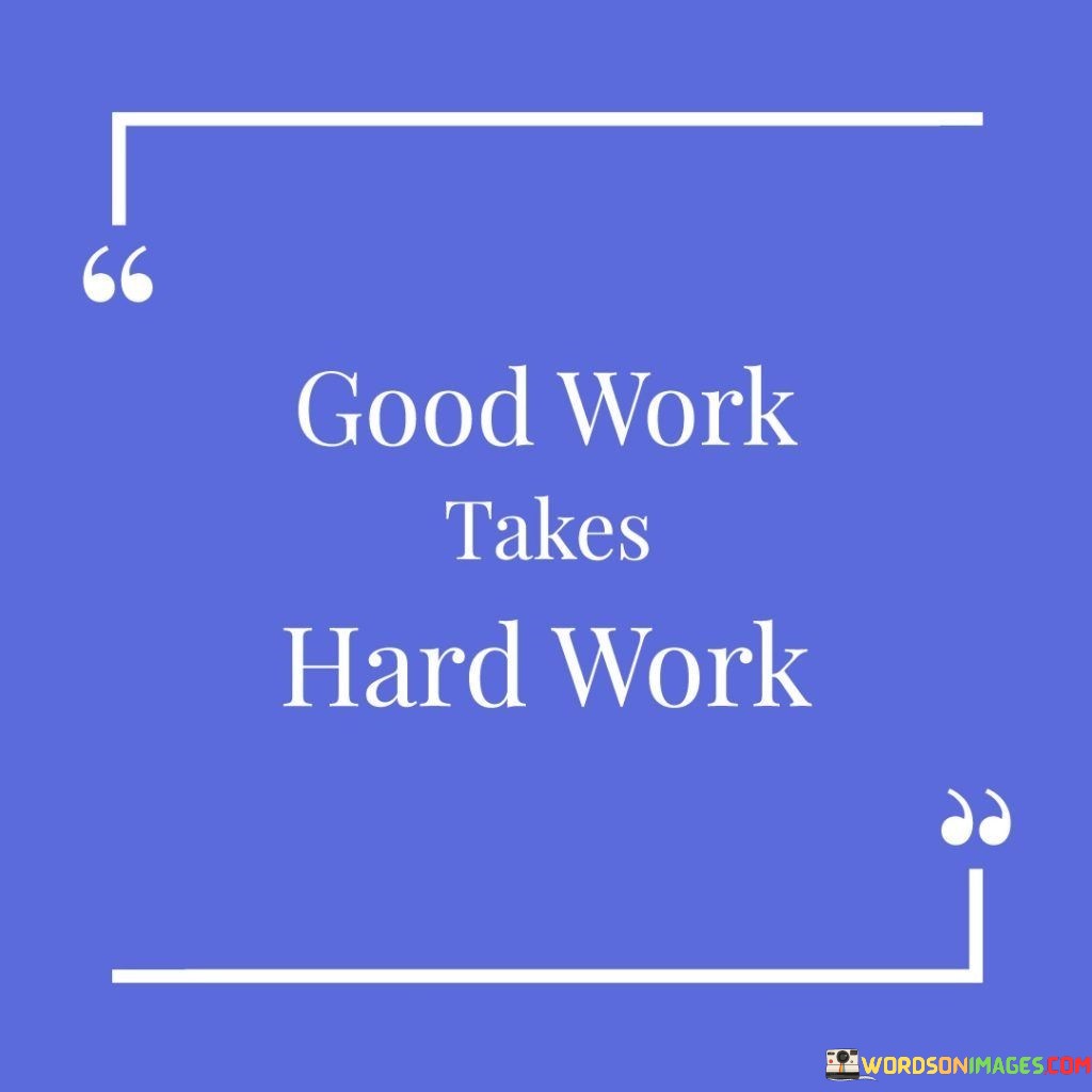 Moreover, this quote also highlights the value of perseverance and resilience. It suggests that when we encounter challenges or setbacks in our pursuits, we should view them as opportunities to refine our skills and improve our work. By embracing hard work as a necessary ingredient for success, we can approach our goals with a sense of determination and a commitment to continuous improvement. Ultimately, "Good work takes hard work" reinforces the idea that the satisfaction and pride that come from accomplishing something remarkable are well worth the effort and dedication invested.