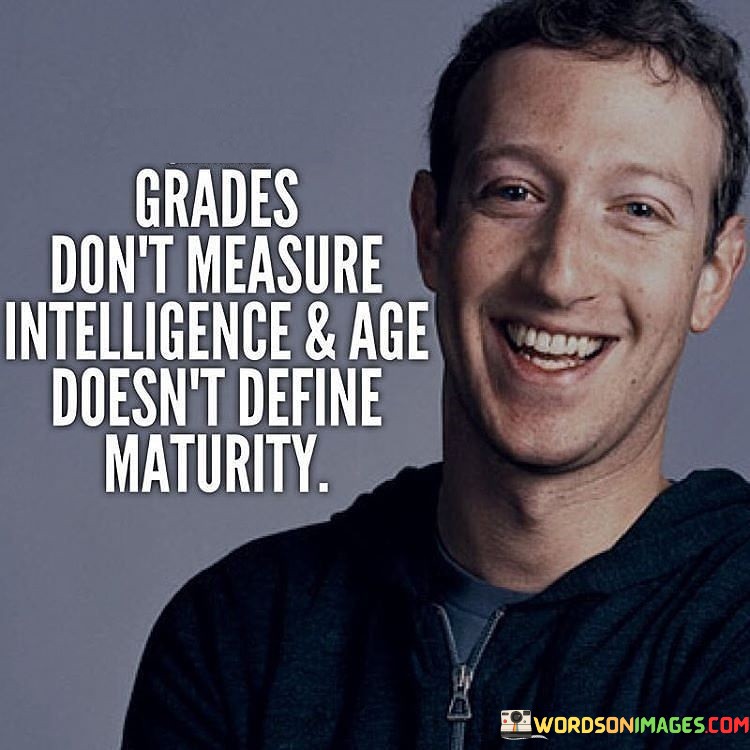 By advocating for a broader understanding of intelligence and maturity, the quote encourages individuals to recognize and value different forms of intelligence and personal growth. It inspires a more comprehensive and open-minded perspective that appreciates the diverse strengths and qualities individuals possess beyond traditional metrics. Ultimately, this quote serves as a reminder to avoid making assumptions based solely on grades or age and to acknowledge the richness and complexity of human abilities and development.