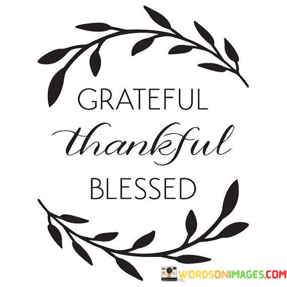 Appreciative for life's gifts. The quote reflects gratitude. It's about positive sentiment. The speaker implies that feeling grateful, thankful, and blessed is an acknowledgment of the positive aspects of life, emphasizing the importance of recognizing and cherishing the blessings that come our way.