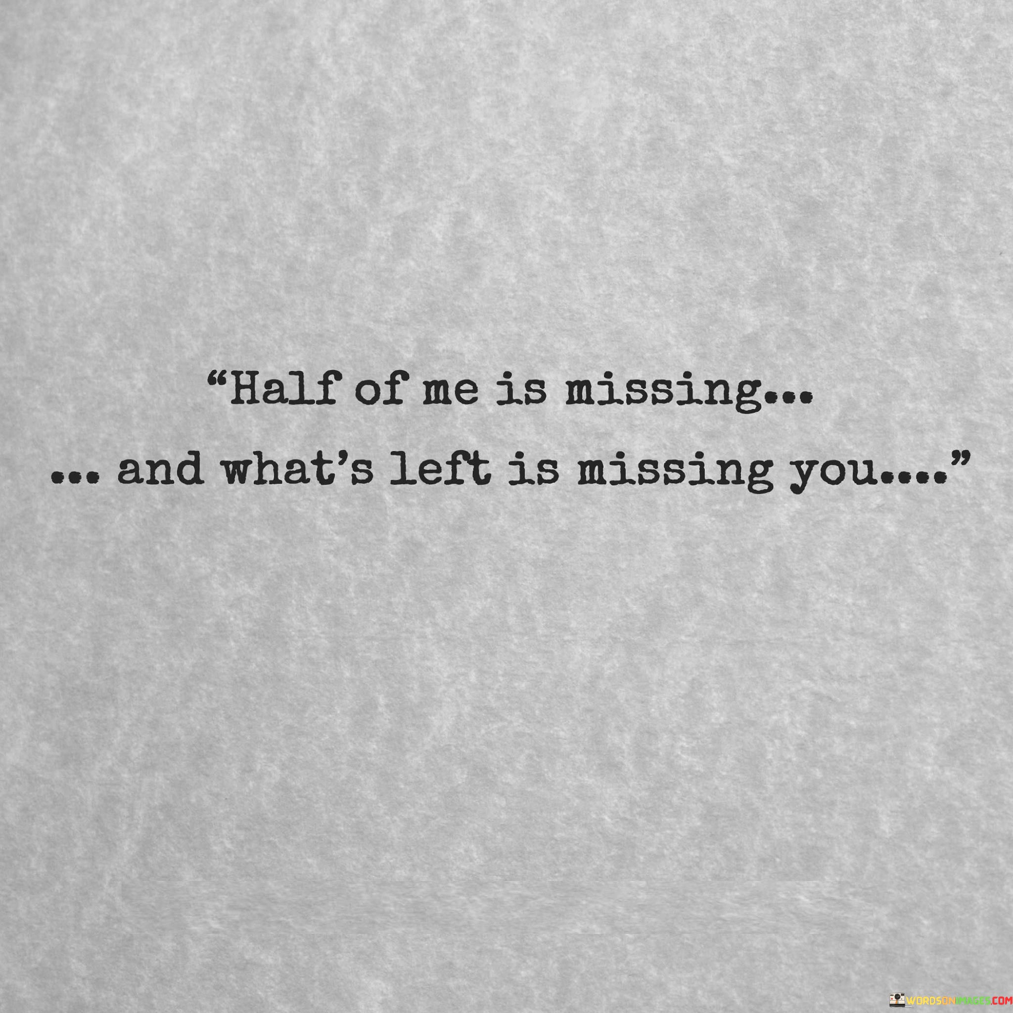 The quote captures the sentiment of loss. "Half of me is missing" conveys emptiness. "Left is missing you" implies longing. The quote illustrates the profound impact of someone's absence on one's emotional state.